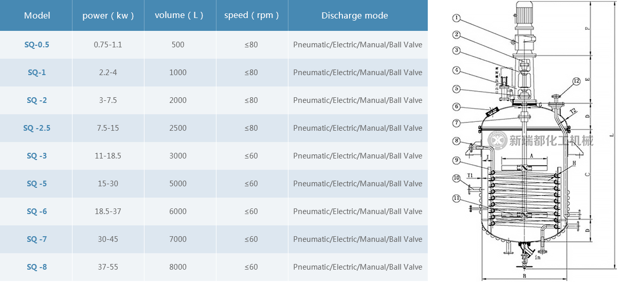 Note: The above parameters are for reference only. The mixing power and speed are related to the material characteristics and the purpose of mixing. Specific requirements are welcome to call and communicate with our engineers, can be customized for different needs of different customers.