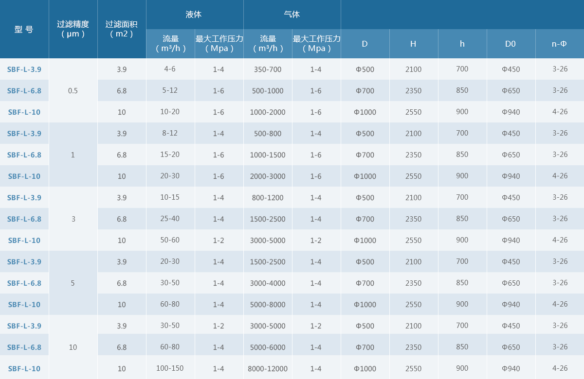 2)本设备具有过滤面积大、压损小、操作方便、分离效率高等优点,最高过滤精度可达0.3μm。