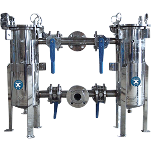 袋式过滤机是一种新型的过滤系统,滤机内部由金属内网支撑着滤袋,液体由入口流进,经滤袋过滤后流出,杂质则被拦截在滤袋中,滤袋可更换或清洗后继续使用。