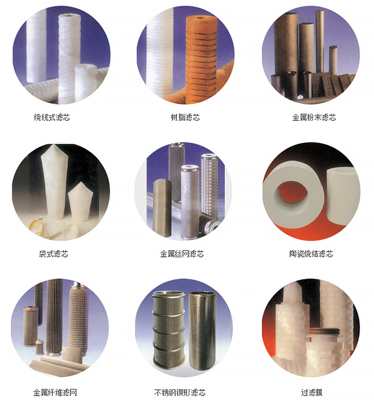 1)其过滤介质由各种不同材质滤芯组成,可根据生产工艺选用。